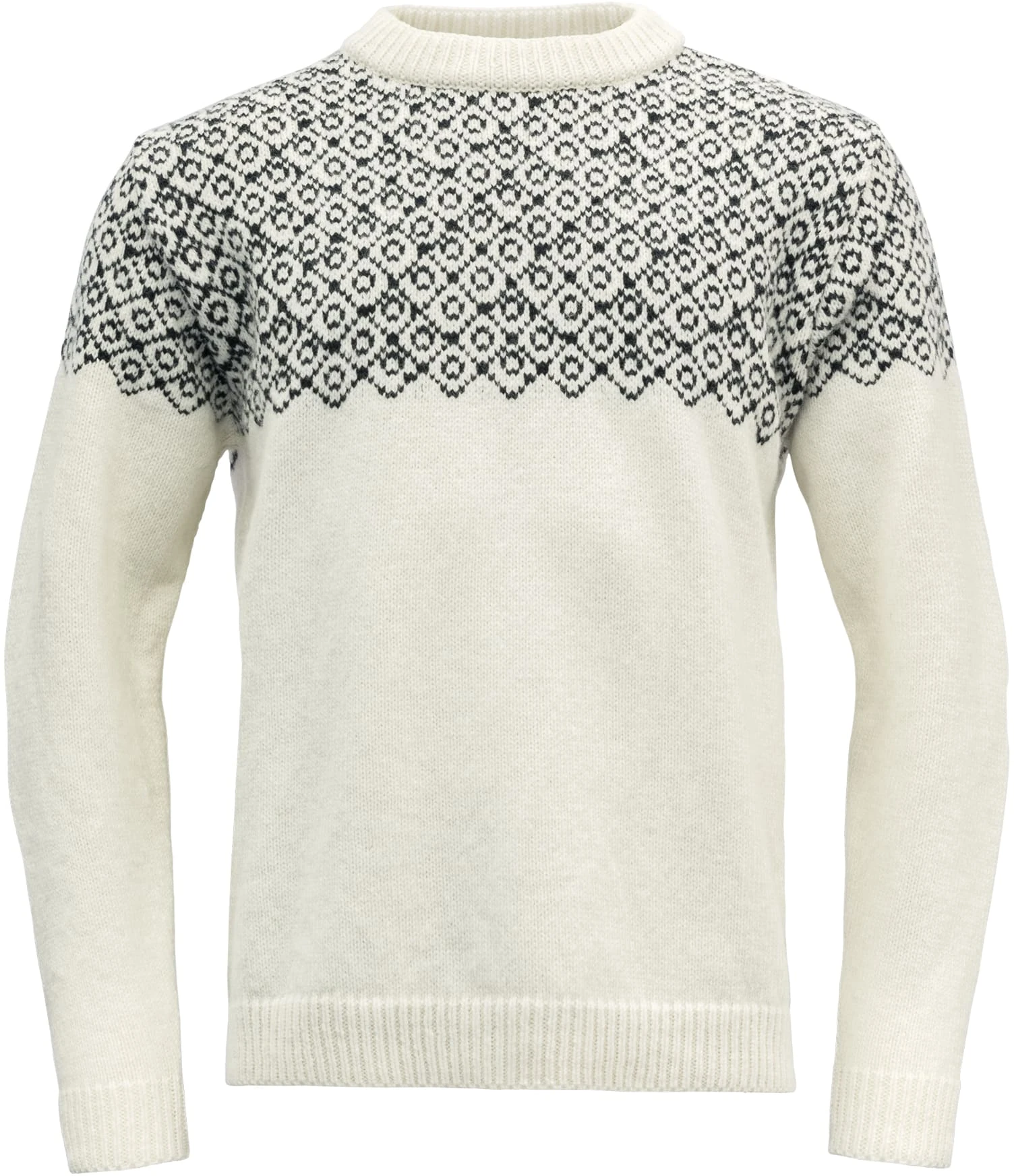 Devold® Bjørnøya er inspirert av en tidløst Devold-hit, nemlig Svalbard. Mens originalen er ekstra varm og isolerende, er Bjørnøya strikket i 100 % ren, ny ull, som gjør den supermyk, lett og mer anvendelig året rundt og uansett eventyr. Det originale mønsteret, opprinnelig designet av italienske designer Olmes Caretti, dekker bare øverste del av genseren, og gir den et mer minimalistisk og moderne preg.