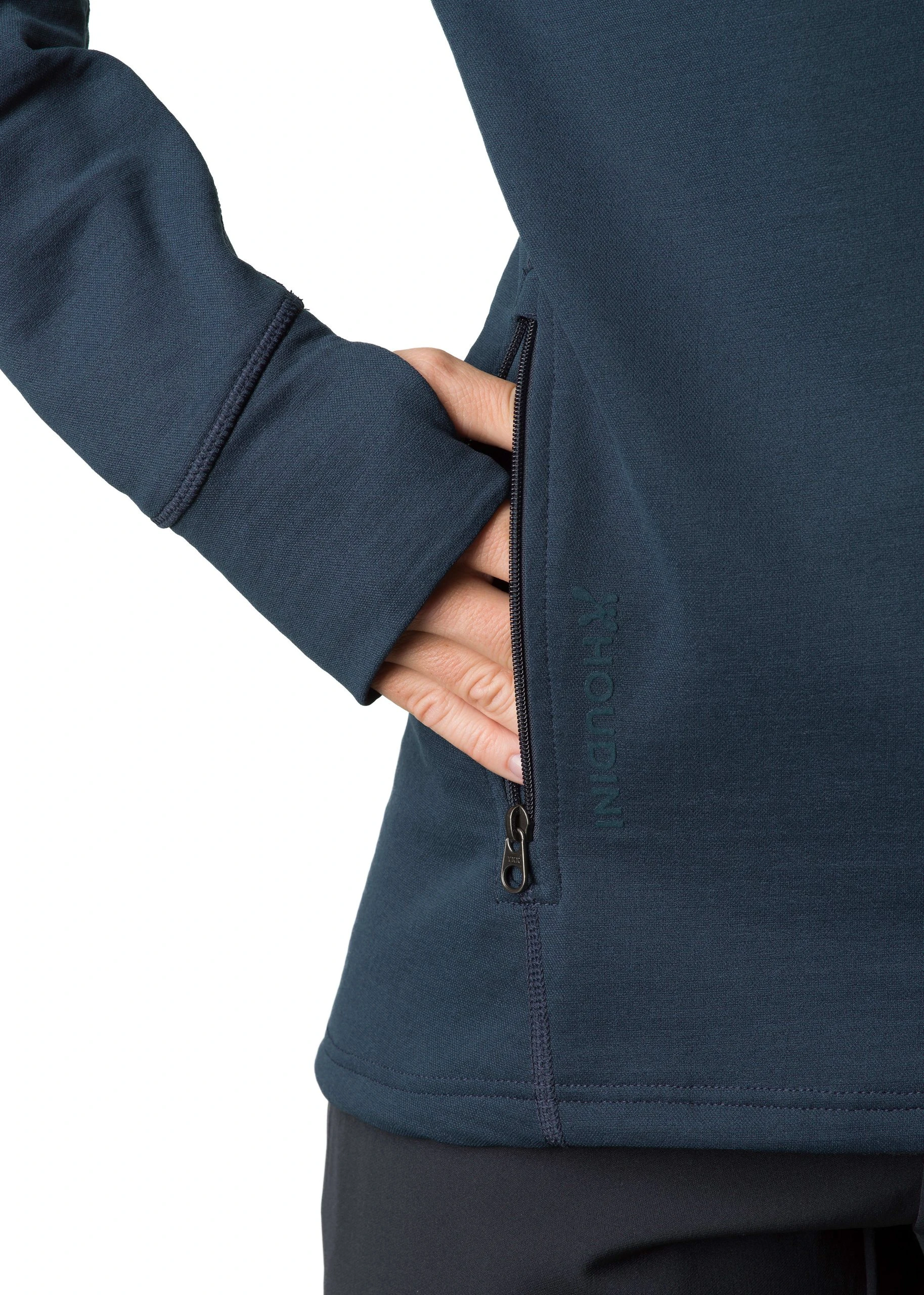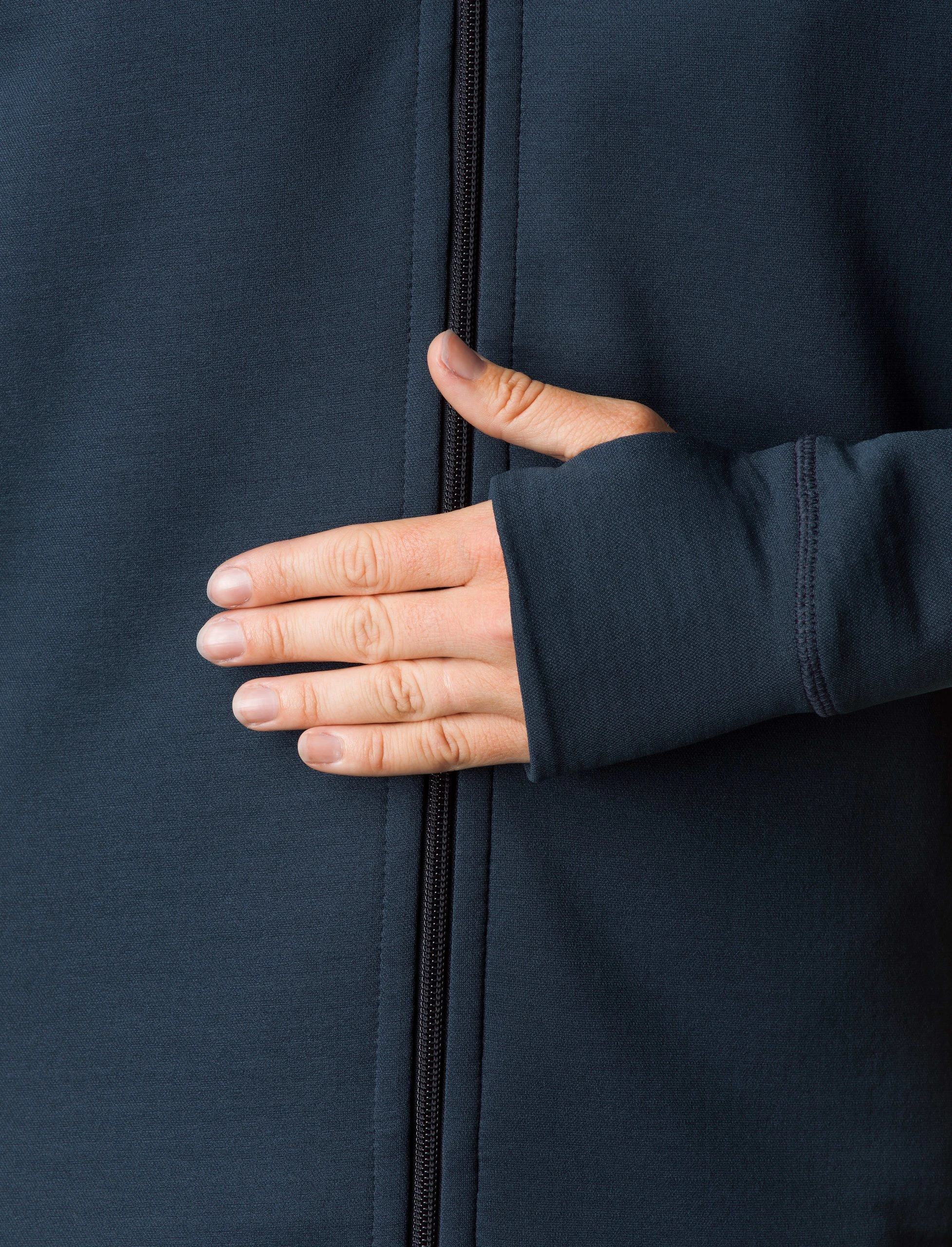 - Ekstra lengde pĂĄ ermene med tommelhull