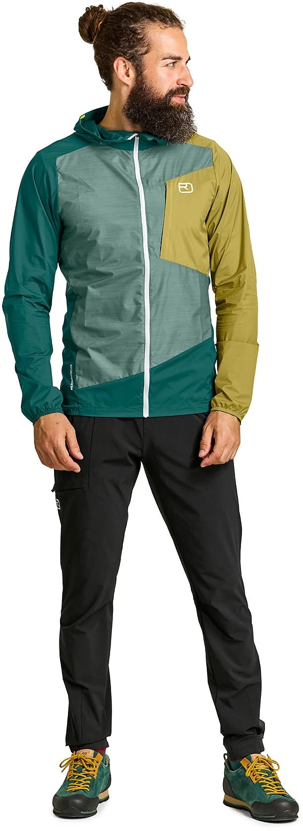 Ekte minimalister ønsker å redusere vekten, men ikke funksjonene – det er derfor Ortovox sine hetter, elastiske mansjetter og linninger er forhåndsjusterte. Jakken kan pakkes helt bort i den praktiske brystlommen med en ekstra hempe, og deretter festes til et belte, belteløkke eller ryggsekk.